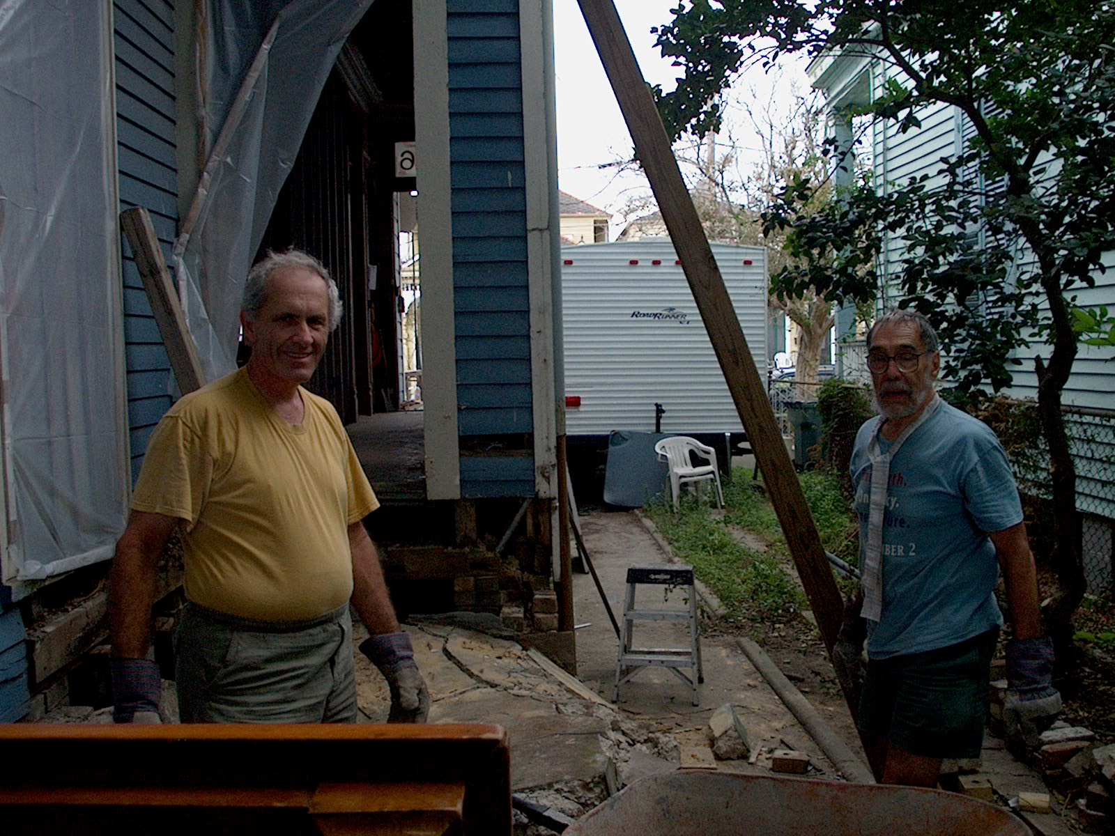 After hooking up with Hands On New Orleans, crews went into the house and gutted it. All plaster was removed, down to the rafters and joists. Everything was then power washed and treated with mold remover. Now, the crews are working on restoring the inside of this interesting old house, built in the 1890’s.