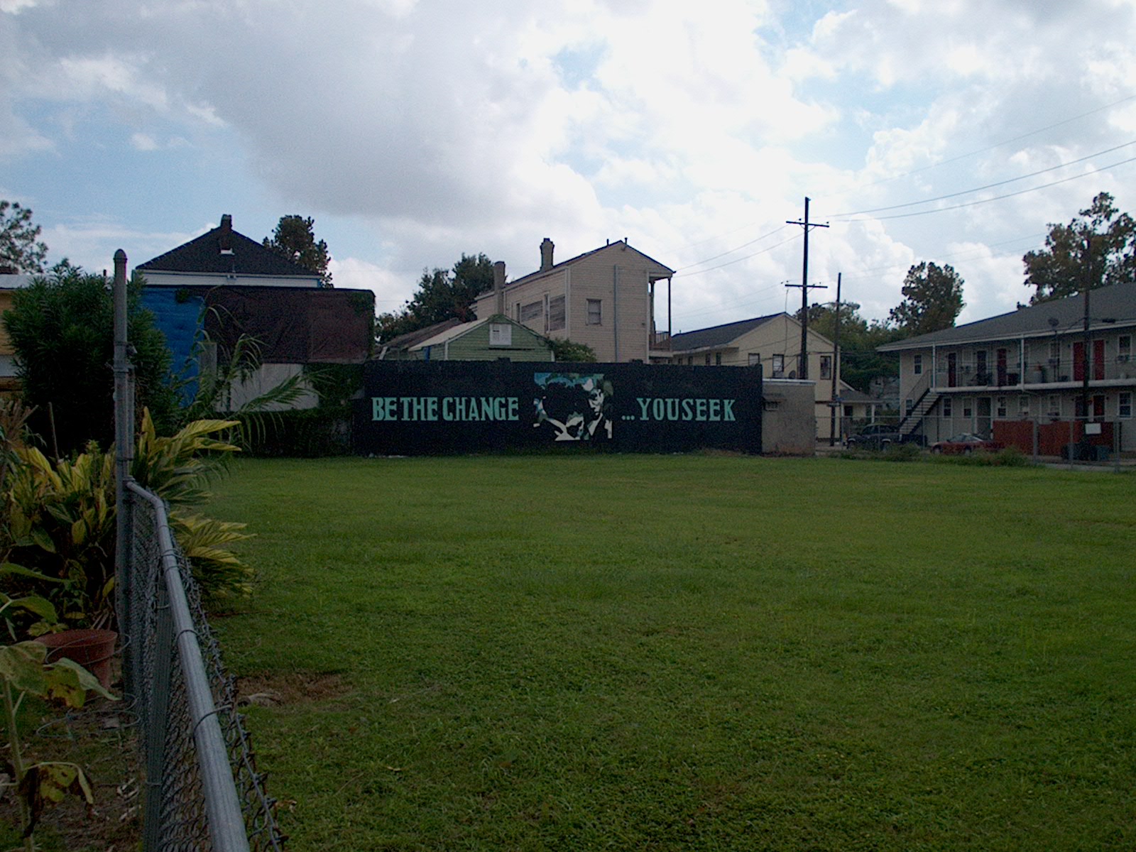 Another important aspect of our trip to New Orleans is infusing our energy and our financial resources into the community. Several of us have reported conversations with local residents thanking us just for being here. Today, our crew ate lunch at Cafe Reconcile, an absolutely fascinating organization in Center City. This five-story building currently is a restaurant where young people learn all of the skills of the hospitality business. In time, the upper floors will be developed into a banquet hall, classrooms, space for entrepreneurial enterprises, and short-term housing for students. The food was amazing – collards, okra, pork chops, crawfish bisque, among other things.