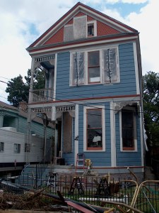 I went back to Ms. Evelyn’s house today. Some of us helped jack up a corner of the house that was sinking. I worked on exploring the possibility of stripping the paint from the baseboards and doors, in order to restore them to their original condition. This is a long-term job, since there is a huge amount of woodwork to be repaired in the home. Once we can set up the best techniques, then the crew leader can direct future volunteers more effectively.